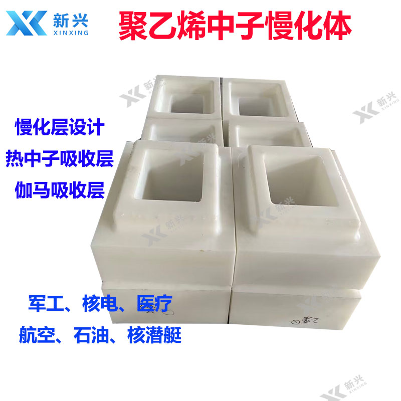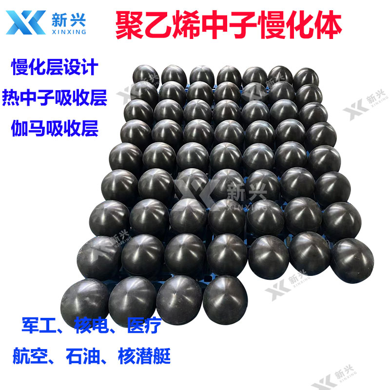 山东新兴定制生产含硼高密度聚乙烯中子慢化体,可加工屏蔽球体、罐体、方形屏蔽体、屏蔽门及屏蔽门体、房体、墙体等,该材料具有材质轻、耐腐蚀、易加工、耐辐照、无污染等特点,便于简化屏蔽体结构,是替代石蜡、混凝土、铅板等的传统复合屏蔽新材料,该材料已经广泛用于核电、JUN工、航空、石油、核潜艇等领域以及中子科研实验室等。